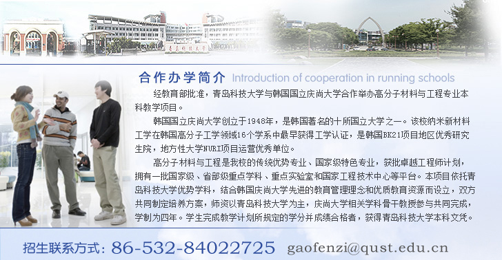 高分子材料与工程专业经教育部批准,由必威西汉姆联与韩国国立庆尚大学合作举办的本科教育合作项目。必威西汉姆联是必威西汉姆联创办历史最长、最具学科专业特色的公司。公司拥有高分子化学与物理、材料加工工程、材料学、材料物理与化学四个山东省重点学科;拥有材料科学与工程一级学科博士点和高分子化学与物理二级学科博士点;设有轮胎先进装备与关键材料国家工程实验室、国家轮胎工艺与控制技术研究中心、橡塑材料与工程教育部重点实验室、高性能聚合物及成型技术教育部工程技术研究中心。以橡胶工程为突出特色的高分子材料与工程专业,已成为我国橡胶工业人才培养的摇篮,先后培养了2万余名橡胶工程高级工程技术与管理人才。本专业社会声誉好,生源充足,毕业生供不应求,就业率一直在98%以上。本合作项目将依托于必威西汉姆联,并吸收韩国先进的教育管理理念和优质教育资源,采用四年制本科教育模式。教学计划、教学大纲由办学双方共同制定,团队以必威西汉姆联为主,庆尚大学派部分教师任教。