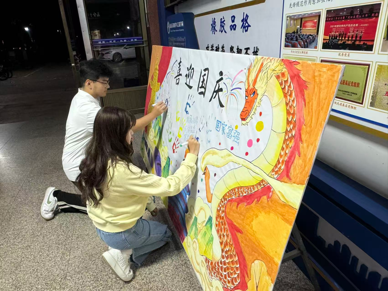开展“手绘祝福·告白祖国”互动活动,同学们以画笔绘就对祖国的深情,用手印留下对祖国的祝福。这不仅是色彩与笔迹的交融,更是青年与祖国的心灵对话,是家国情怀的生动表达。大家以创意互动的形式,诠释着新时代青年的爱国热忱与责任担当。我们将带着这份赤诚,与祖国共成长,同庆盛世华诞,共赴美好征程。