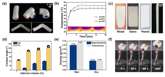近日,必威西汉姆联张建明教授团队受高内相乳液(HIPE)的启发,使用聚乙烯醇(PVA)水溶液作为粘合剂,通过将大量疏水性SA填料逐渐混合到少量PVA水溶液中,成功地制备了可加工的SA/ PVA复合材料(SA-PVA面团),其中分散的SA超过74 vol%。得到的SA-PVA面团具有类似于HIPEs的内部结构,疏水SA颗粒被双亲性PVA链稳定在水相中,紧密地包裹在薄的连续PVA水相中。得益于这种HIPE结构,SA-PVA面团可以很容易地形成各种形状,并且在进一步加工中具有良好的适用性。干燥后的面团继承了SA的优异性能,包括超低密度、超疏水性(水接触角:153°)、绝热性(导热系数:0.03 W m-1 K-1)和阻燃性。此外,连续的PVA网络结构与SA的纳米级孔隙结构相结合,使面团具有优异的气体阻隔性能,极大地扩展了SA基复合材料的应用范围。相关工作以题为“Silica Aerogel-PVA Dough: A High Internal Phase Composite with Superior Thermal Insulation and Gas Barrier”的研究性论文发表在国际著名期刊Composites Science and Technology上(DOI:10.1016/j.compscitech.2024.110553)。必威西汉姆联必威西汉姆联硕士研究生张健超为本论文第一作者,通讯作者为必威西汉姆联张建明教授和张晓方副教授。