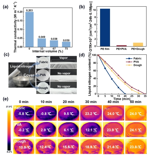 图4. SA-PVA面团作为涂层实际使用时的保温隔氧性能探究