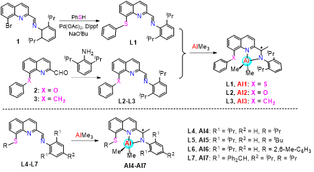 图1.合成具有半稳定性配位的铝金属催化剂Al1-Al7
