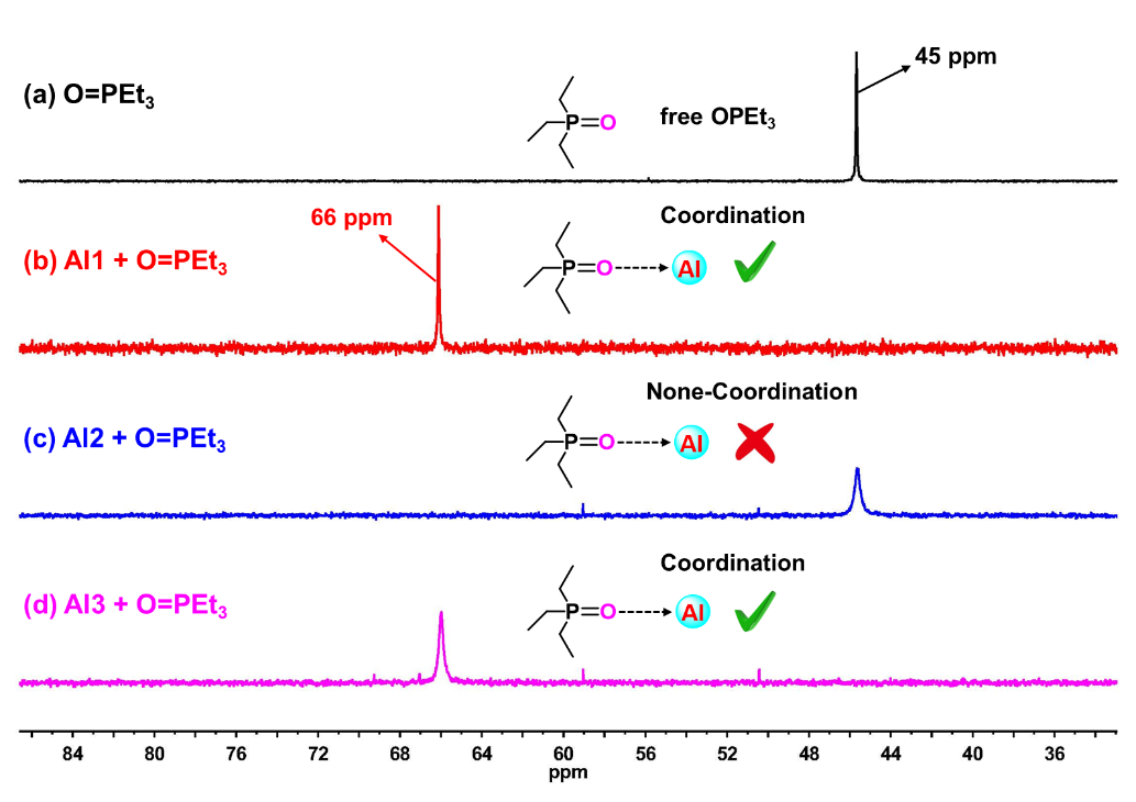 图2.O=PEt3(a)、O=PEt3与Al1−Al3反应(b−d)的31P NMR图