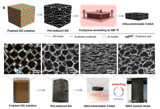 图1、 超拉伸石墨烯气凝胶制备过程。