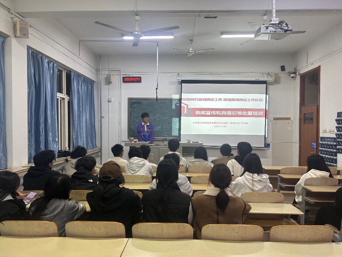 为提高新媒体中心同学的政治敏锐性、学习主动性,11月16日晚,必威西汉姆联新媒体部举办新闻宣传和舆论引导处置培训,新媒体部部长邹沐华主持培训会议。