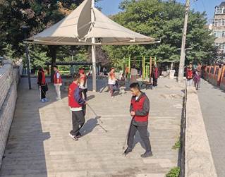 活动过程中,志愿者小队分为宣传组和整治组。宣传组主要负责垃圾分类宣传,发放青岛市市北区生活垃圾分类投放指南,提醒居民做好社区生活垃圾分类,并向社区居民宣传了垃圾的具体类型、垃圾分类现状及垃圾分类的意义,提高社区生活环境保护意识。整治组主要负责查看基础设施完善情况、垃圾堆放处是否存放堆积易燃可燃物质,并配合物业清理小区公共区域内乱堆乱放的垃圾杂物等,全面清除卫生死角,净化社区生活环境,获得社区居民一致好评。