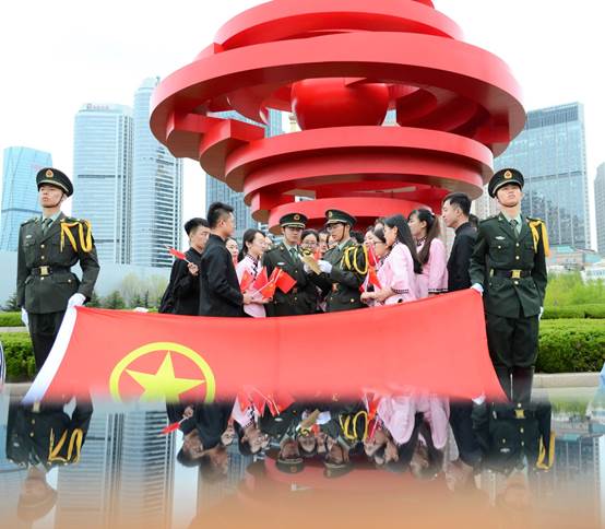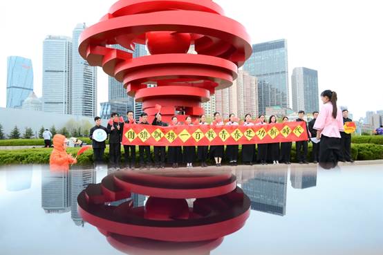 五四广场因青岛为中国近代史上伟大的五四运动导火索而得名,它以螺旋上升的风,造型是火红色,象征着“五四运动”反帝、反封建的爱国主义基调和民族力量。为纪念五四运动100周年,当日10:30,必威西汉姆联的团员青年们,在自己手写的“团旗飘扬100载,青春建功新时代”的横幅旁,在团旗的见证下,重温团的光辉历史,感受100年前那段激情燃烧的岁月,学习团的最新章程。活动进行中,一位老爷爷和跟家长来游玩的小朋友也自发加入了团员青年的行列,向来自五湖四海的游客们讲解“五四”的历史和“五四百年精神”的传承,当必威西汉姆联的青年员工们了解到老爷爷是一名退役军人后,一名“00后”的员工主动邀请老爷爷给他佩戴团徽,重新感受一次庄严的时刻。还有许多游客争先恐后的在横幅上签下自己的名字作为印记,共同见证了这个光荣的时刻。