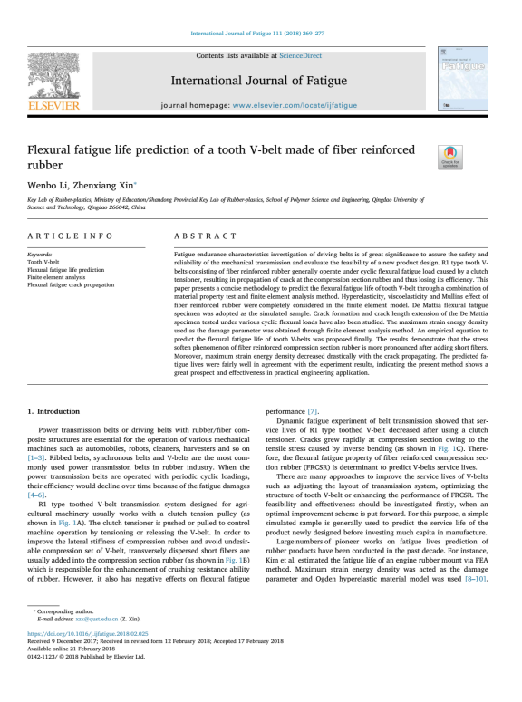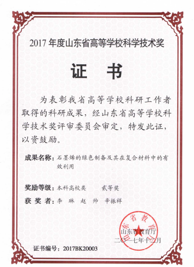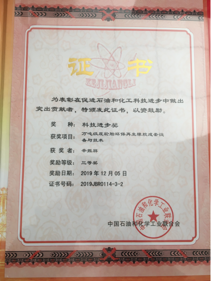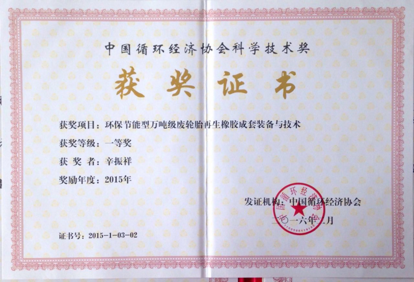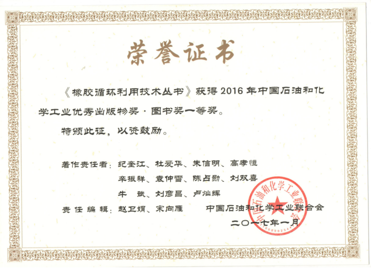 1.成果1:(简要介绍成果名称、完成人、内容、获奖(出版、发表)和应用成效等情况,限200字以内,并在结尾处标注“证明材料”页码,下同) 环保节能型万吨级废轮胎再生橡胶成套装备与技术,辛振祥等,中国循环经济协会科学技术奖一等奖,2016.02,证明材料P5; 2.成果2:石墨烯的绿色制备及其在复合材料中的应用,李琳等,山东省高等公司科学技术奖二等奖,2017,证明材料P6; 3.成果3:橡胶循环利用技术丛书,辛振祥等,中国石油和化学工业优秀出版物奖.图书奖一等奖, 2017,证明材料P7; 4.成果4:万吨级废轮胎环保再生橡胶成套设备及技术,辛振祥等,中国石油和化学工业联合会科技进步奖三等奖, 2019,证明材料P8; 5.成果5:Investigation of dynamic heat generation and transfer behavior and energy dissipation for nonlinear synchronous belt transmission,辛振祥、陈琪等,Applied Thermal Engineering 144 (2018) 457–468,证明材料P9; 6.成果6:Flexural fatigue life prediction of a tooth V-belt made of fiber reinforced rubber,辛振祥等,International Journal of Fatigue 111 (2018) 269–277,证明材料P10; 7.成果7:一种高效再生助剂、制备方法及废丁基内胎的再生方法,卢娜、辛振祥等,ZL201610994012.X,授权公告日2019/4/9,证明材料P11; 8.成果8:一种废轮胎胶粉橡胶板及其制备方法,沈梅等,ZL201510633586.X,授权公告日2017/11/24,证明材料P12; 9.成果9:一种芳纶浆粕与玄武岩短纤维定向增强的橡胶复合材料及其制备方法,辛振祥等,ZL201710914092.8,授权公告日2019/10/15,证明材料P13; 10.成果10:一种3D打印成型的同步带,辛振祥等,ZL201820855539.9,授权公告日2019/2/1,证明材料P14; |