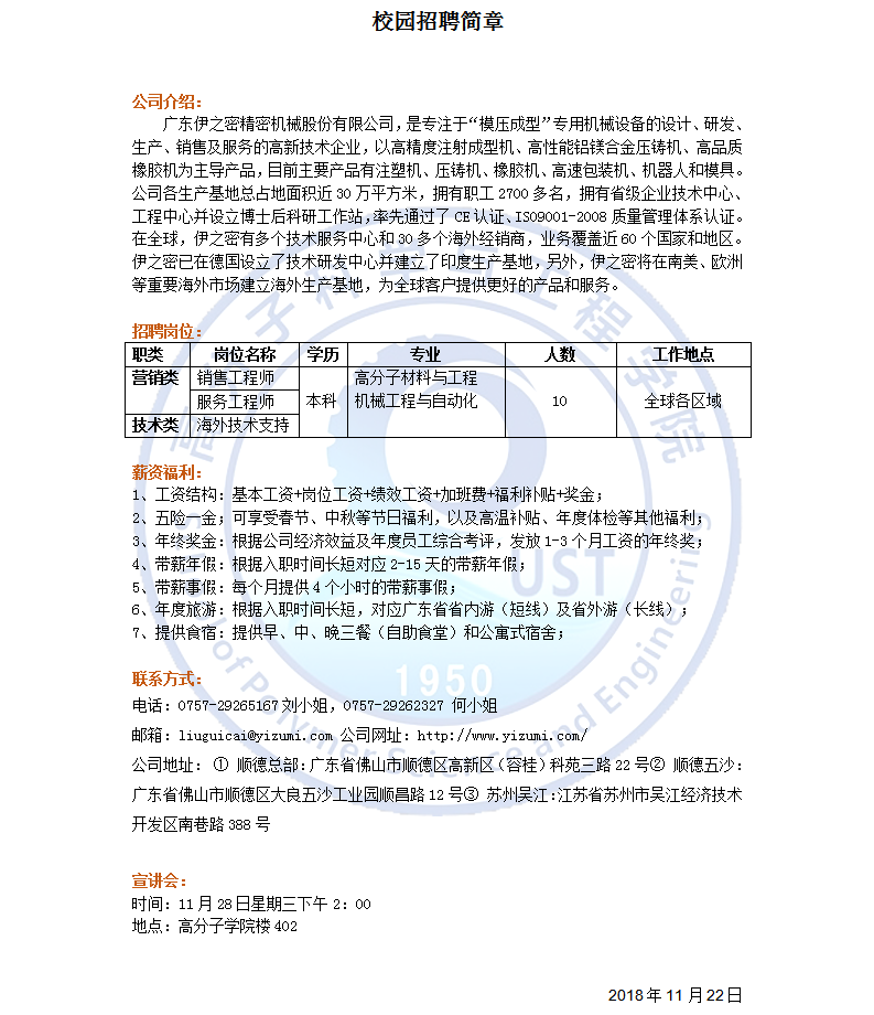 广东伊之密精密机械股份有限公司-2019高分子招聘之三十八