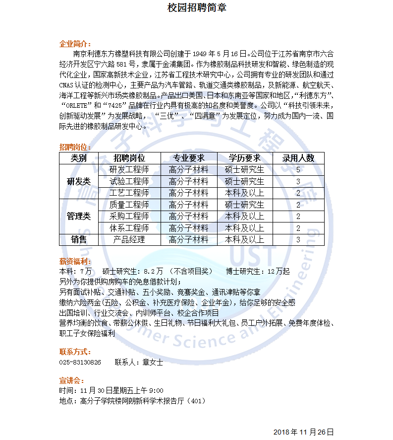 南京利德东方橡塑科技有限公司-2019高分子招聘之四十