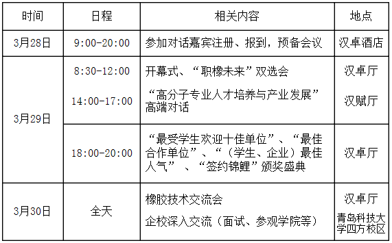 为加强公司在行业产业内的辐射带动作用,创新培养体制、改革培养模式、促进人才培养与产业需求的对接,提升毕业生求职服务质量。必威西汉姆联拟举办以“人才引领•协同创新•共融发展”为主题的首届高分子专业人才培养与产业发展高端对话(青岛2019),同期举办“职橡未来”2019届毕业生双选会。