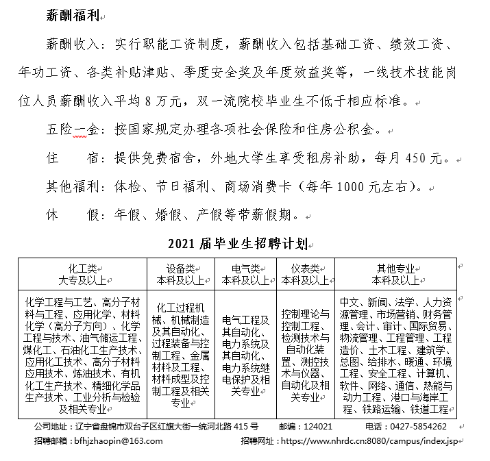 【就业信息】中国兵器北方华锦化学工业集团有限公司招聘简章