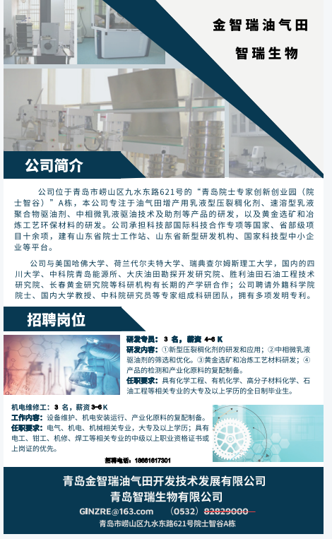 【就业信息】金智瑞油气田智瑞生物招聘简章