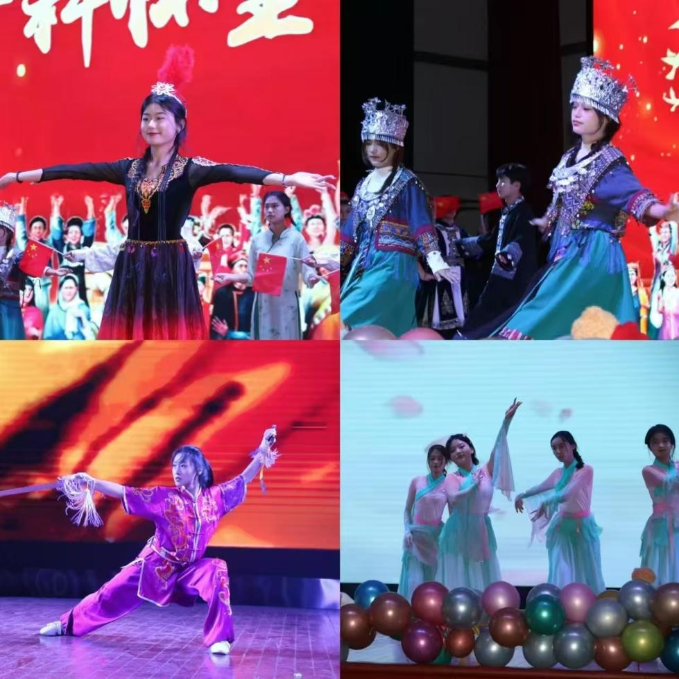 第二篇章——灼灼见党心。赤诚的红心是为中国人民谋幸福,为中华民族谋复兴的责任与担当。少数民族舞蹈《石榴花开》以石榴为象征,寓意各民族团结,繁荣,如石榴般围绕在党中央周围。话剧《与高分子相“橡”而行》走进师生的日常生活,展现青年学子“同心协力,勇承重载”的橡胶品格。中国舞《流水桃花》舞者的身韵像流水桃花一样婉转流淌,展现生命的律动。