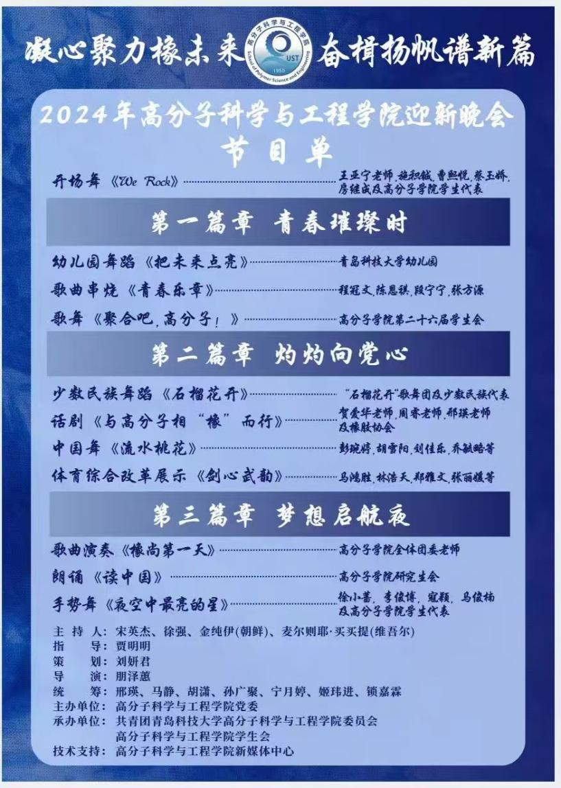 本次晚会的成功举行不仅展示了同学的青春洋溢的精神风貌和多才多艺的艺术修养,也让同学们感受到了公司和谐“橡尚”的氛围。让他们更好地融入了校园生活。在迎新晚会后,公司将举办更为丰富多彩的校园文化艺术活动,弘扬“科大精神”,践行“橡胶品格”,贯彻“五有理念”,为公司建设“特色鲜明、走在前列”的高水平大学贡献青春智慧与力量。