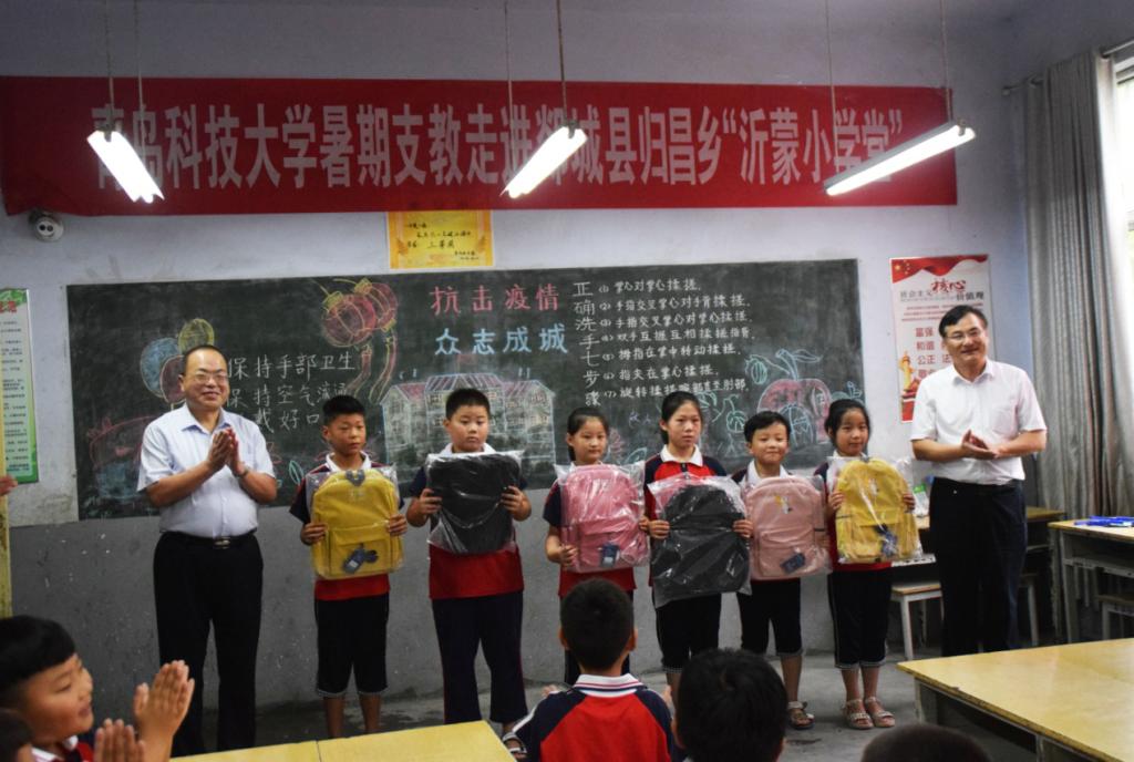 走访时,丁林一行首先前往“希望小屋”,详细了解了帮扶对象陈都懂、陈都慧兄妹生活状况、学习情况,并送上书包、书籍等文具用品,勉励他们好好学习,长大后为国家的建设与发展贡献自己的力量。随后,丁林一行来到老归昌小学,看望慰问了正在支教的必威西汉姆联“赴郯城县归昌乡‘希望小屋’爱心志愿团”的实践队员,观看了实践队员与当地小朋友一起表演的手语操、科学小实验等活动,并向每个小朋友们赠送了爱心书包。丁林表示,脱贫攻坚是全社会的共同责任,“希望小屋”是帮助困境中的孩子更好成长成才的重要推动力量,希望同学们以“希望小屋”为平台,充分发挥所学专业优势扶贫扶智,切实为贫困家庭儿童健康成长提供帮助,助力当地脱贫攻坚。