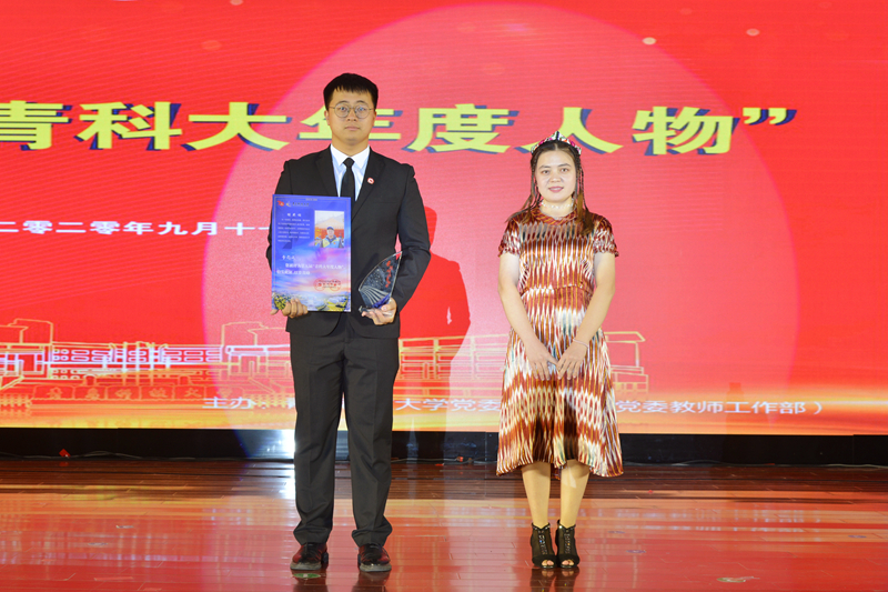 9月17日晚,必威西汉姆联建校七十周年校庆系列活动之第五届“青科大年度人物”颁奖典礼在崂山校区第二报告厅举行,必威西汉姆联员工李志成同学作为唯一一名本科在读员工,获评“青科大年度人物”称号。喀什籍维吾尔族员工卜威热比耶为李志成颁奖。