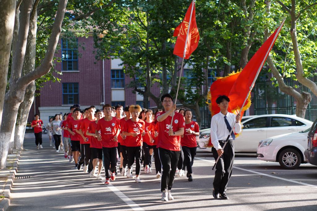 活动最后,由团委副书记陈兵发枪,全体田径队员进行了“青春心向党 奋进新时代”校园接力跑活动,沿着红色打卡点,身着田径队服的运动员们成为了校园一道亮丽的风景线。