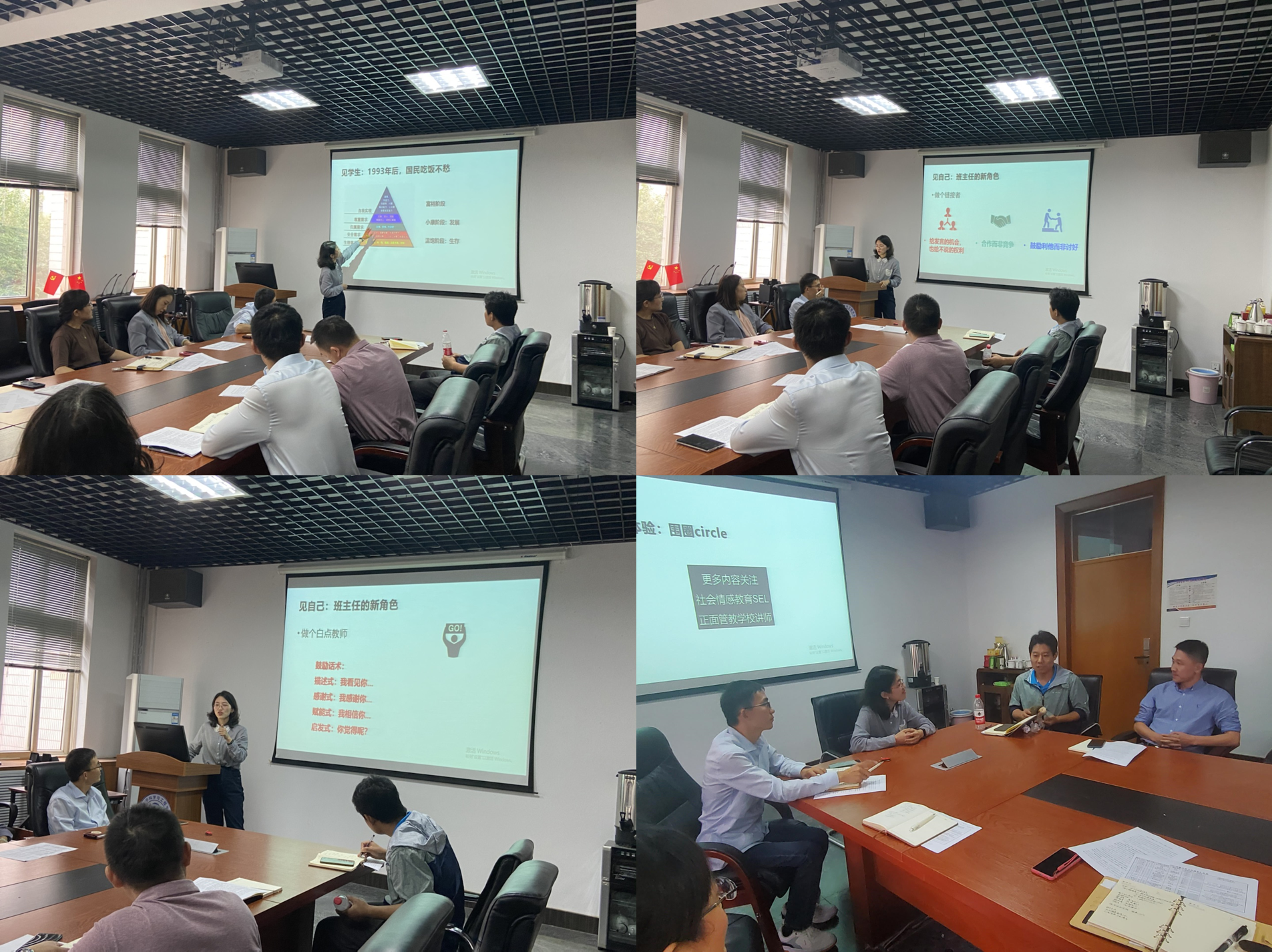 为加强班主任对“00”后员工了解,公司邀请校“十佳班主任”褚晓珂老师以“见员工,见老师,见自己”为题,为新生班主任解读“00”后压力和孤独感强、现实感弱、内心柔软、愿意利他的心理状态,从理论角度分析员工追求自我实现、尊重和归属的需求,并通过“围圈”的心理团辅活动,带领班主任互动式体验“员工班会”,换位思考,增进对员工的了解。