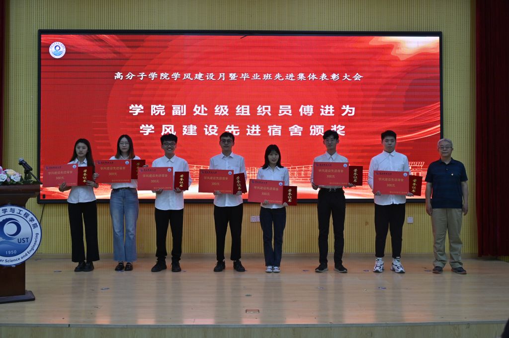 王庆富宣读了关于表彰2018级学风建设先进集体的决定,孙洪广、傅进分别为学风建设先进班集体和先进宿舍颁发奖状和证书。获奖集体高材实验181班代表、保研至清华大学程玉新同学发表了获奖感言。