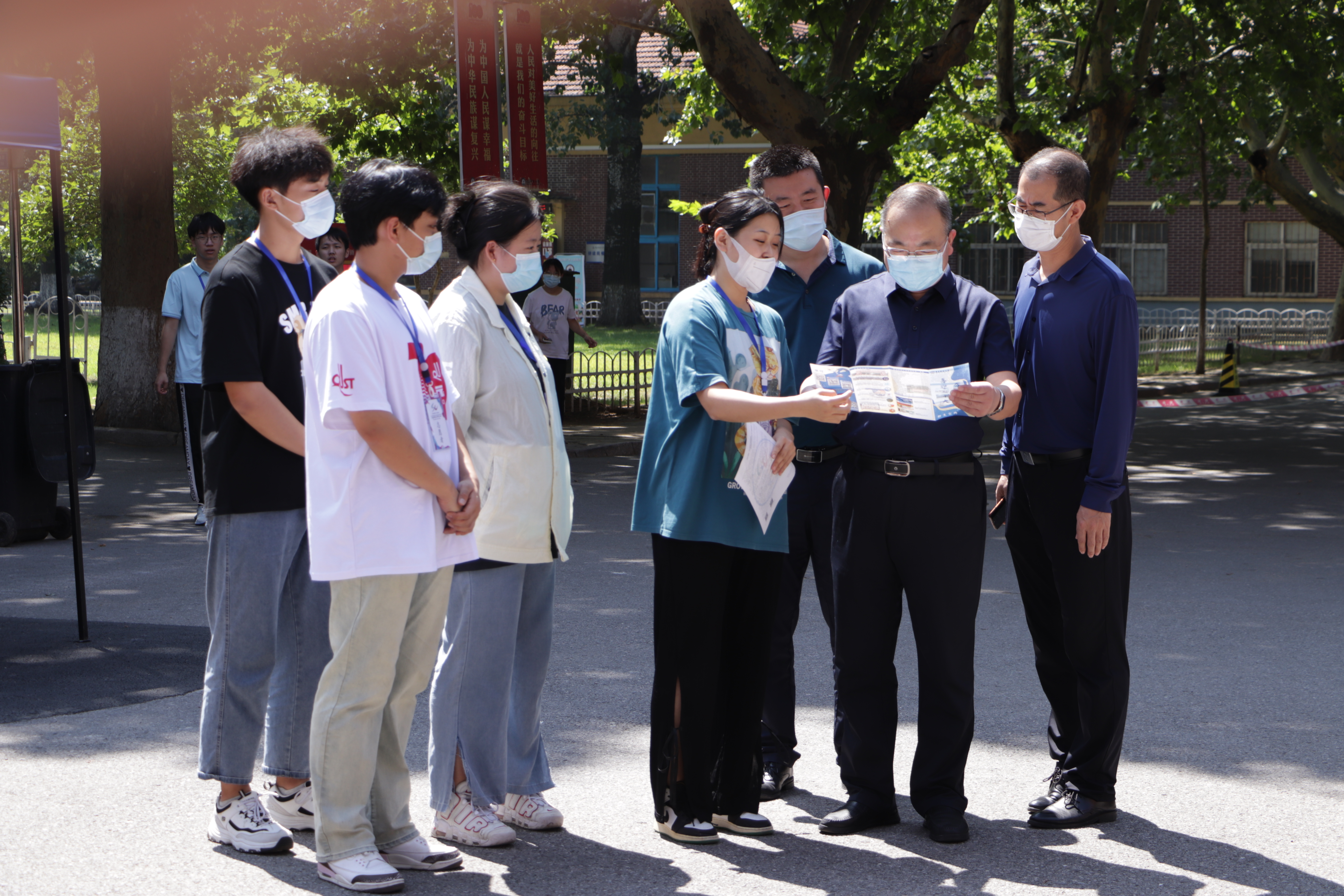公司党委常委、副董事长丁林莅临迎新现场,给予新生温暖的关怀,对志愿者和迎新工作人员致以亲切的问候,员工处、团委领导陪同。