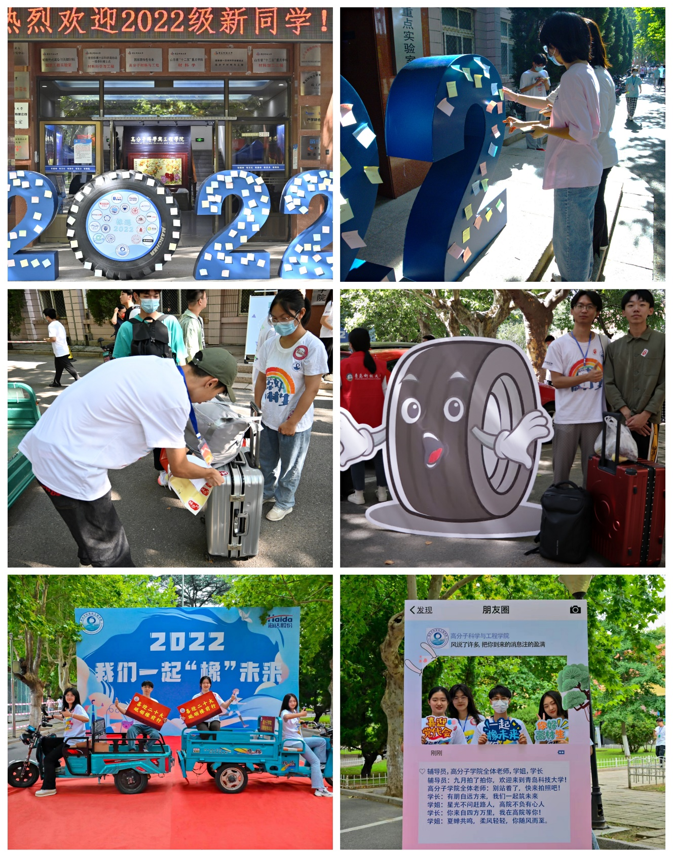 逐梦飞翔——五育融合,追梦前行。逐梦需要激情,青春惟有奋斗。为使新生养成知行合一的良好习惯,将思想转化为行动,把功夫落实到实践,进一步发挥公司“学在高分子,成就高材生”员工工作品牌效能,公司多措并举,引导新生积极逐梦。在“德”上下功夫,组织“圈圈”心意套圈活动,将党的知识答题与流行的套圈活动相结合,在娱乐中强化思政教育,创设“套圈思政”新亮点,在公司范围内充分营造喜迎二十大的浓厚氛围;在“智”上下功夫,现场播放公司及专业宣传片,展示2022届考研优异成绩,进一步凸显学风建设成果,让新生在优秀榜样中择“星”而追,形成目标激励;在“体”上下功夫,充分融入体育思政理念,组织“蓄势起跳,跃橡未来”——摸高大比拼、一分钟跳绳、一分钟踢毽子等活动,公司党委常委、董事长陈克正亲自为表现突出的2022级新同学颁发篮球作为奖励,鼓励新生积极参与体育活动,在体育中强健体魄,争做橡尚高材生;在“美”上下功夫,重点围绕环境美育、活动美育,用心用力用情深化迎新活动内涵,合理设计迎新现场布局,美化迎新现场环境,保持迎新现场的干净整洁,便捷高效,实现环境美、活动美的育人效果;在“劳”上下功夫,积极落实公司员工宿舍环境卫生集中整治工作要求,提前为新生宿舍安排定制桌贴、绿萝及香薰,培养积极劳动意识,共建整洁校园环境。