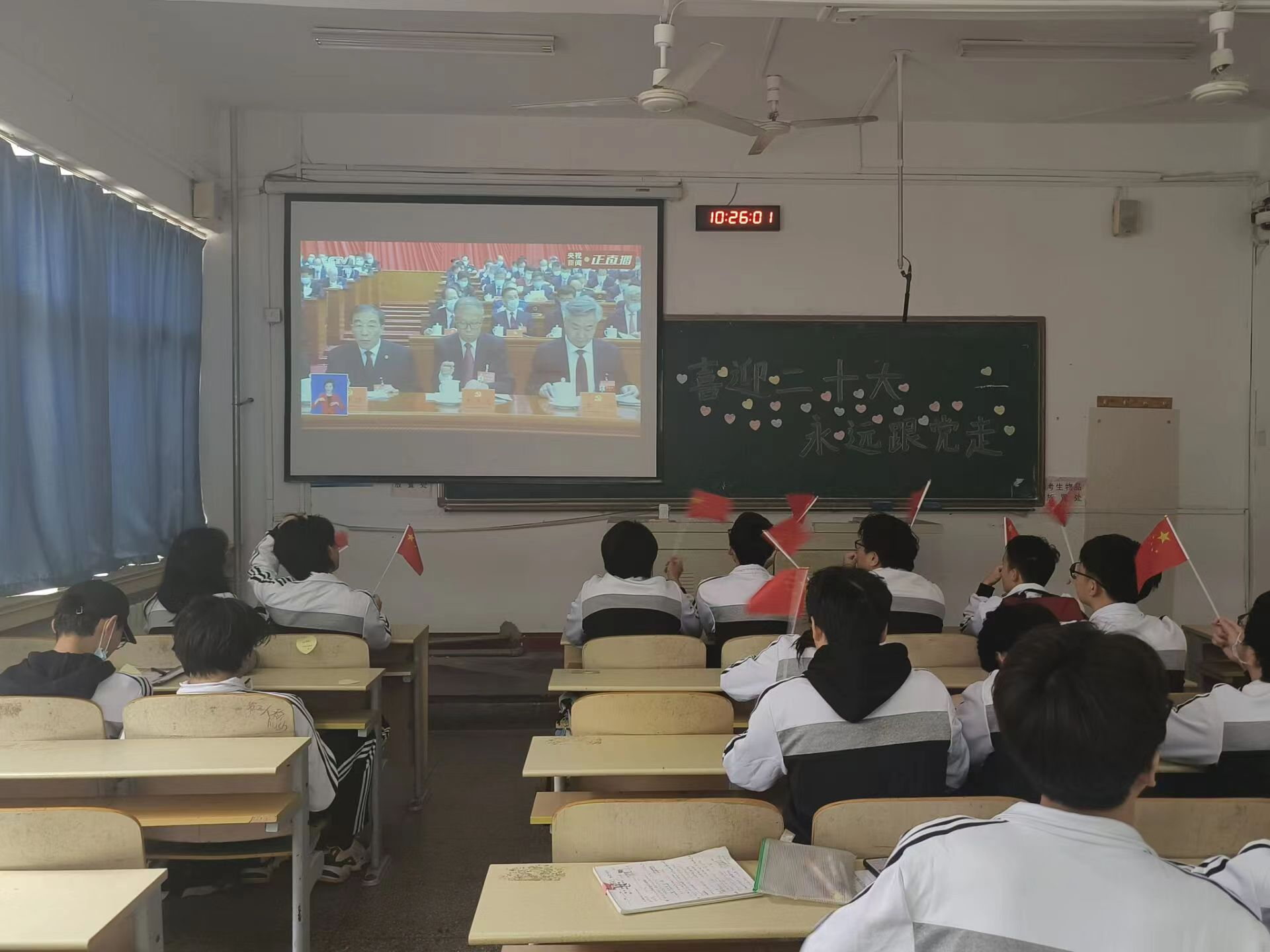 上午10时,党的二十大开幕会正式开始,大家激动地鼓起掌来。此次大会是全党全国各族人民迈上全面建设社会主义现代化国家新征程、向第二个百年奋斗目标进军的关键时刻召开的一次十分重要的大会,将科学谋划未来五年乃至更长时期党和国家事业发展的目标任务和大政方针。大家聚精会神、边听边记,仿佛置身于大会现场,掌声一次次响起……激动与自豪之情溢于言表,大家表现出了对党的无限热爱和对党的二十大的热切期待。