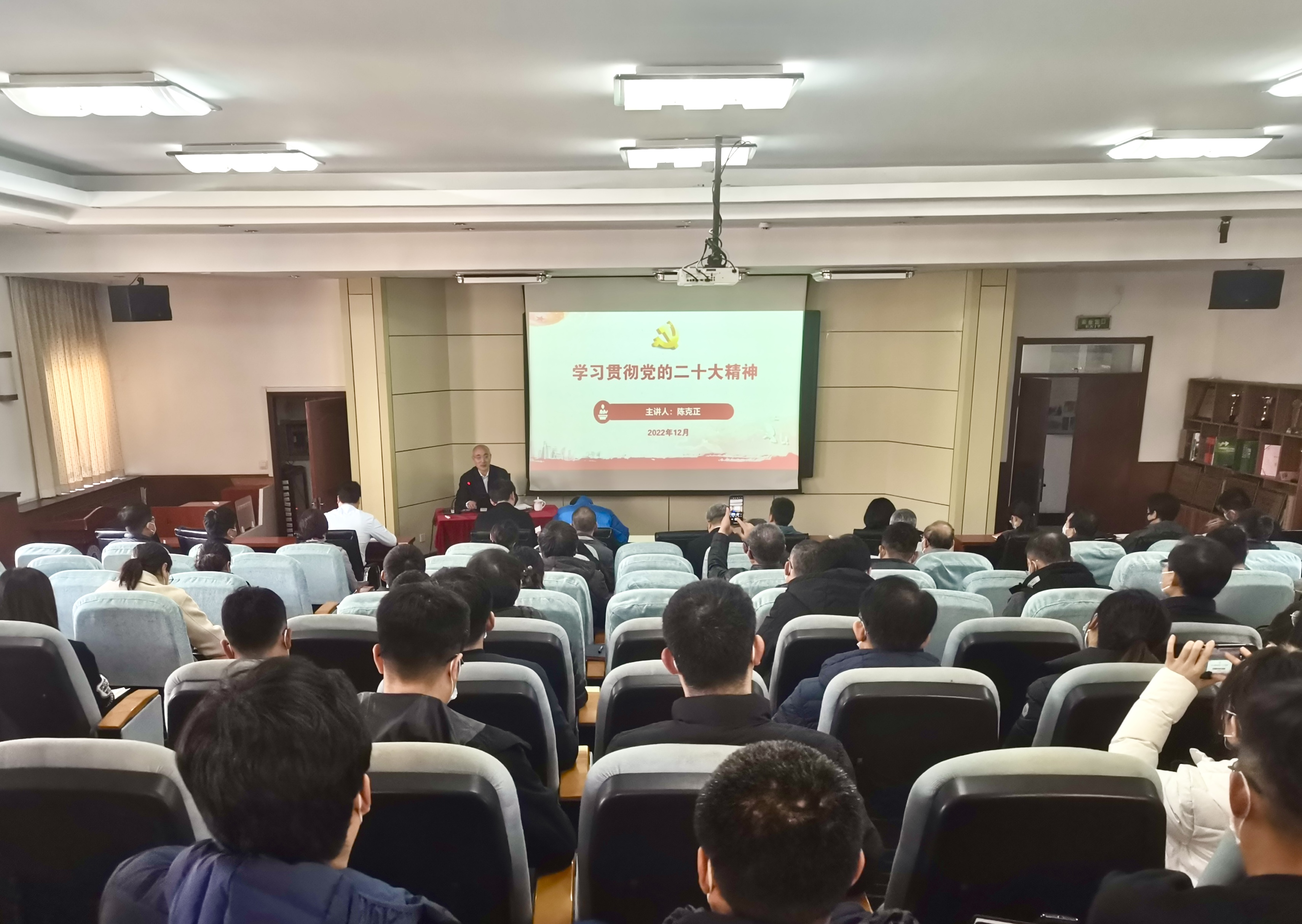 陈克正重点从党的二十大的主题、主要成果和报告起草的过程;过去五年工作和新时代十年的伟大变革;马克思主义中国化时代化;中国式现代化;党的二十大报告中关于教育科技人才的战略部署等8个方面,全面解读了党的二十大报告中的新观点、新论断、新思想。