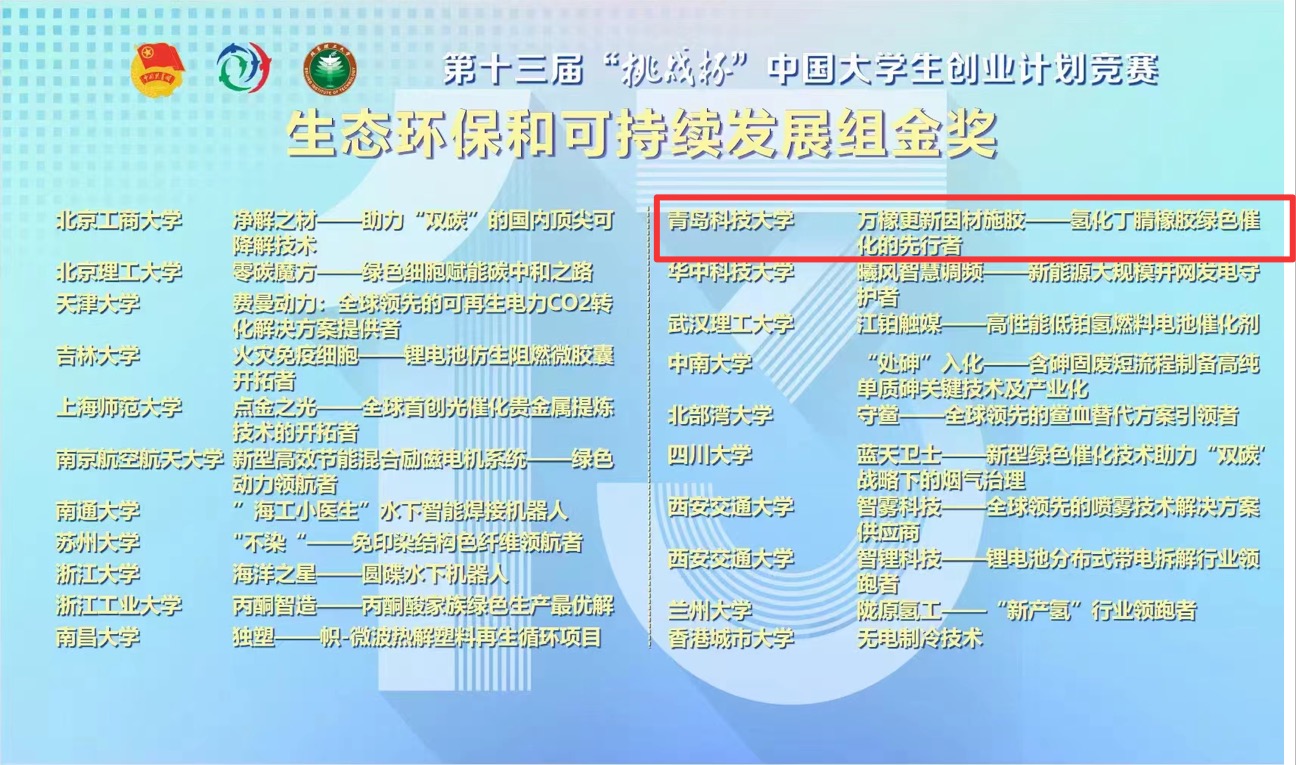3月17日至19日,第十三届“挑战杯”中国老员工创业计划竞赛总决赛在北京理工大学良乡校区成功举办,公司研究生洪子通主持的参赛项目《万橡更新因材施胶-氢化丁腈橡胶绿色催化的先行者》荣获全国金奖,实现了公司参加此项赛事夺金的突破!此外,李春锋同学主持的参赛项目《瑞卜思抗癌新药——癌症患者的福音》荣获全国银奖。本次赛事公司实现了获奖数量、获奖质量的“双丰收”!