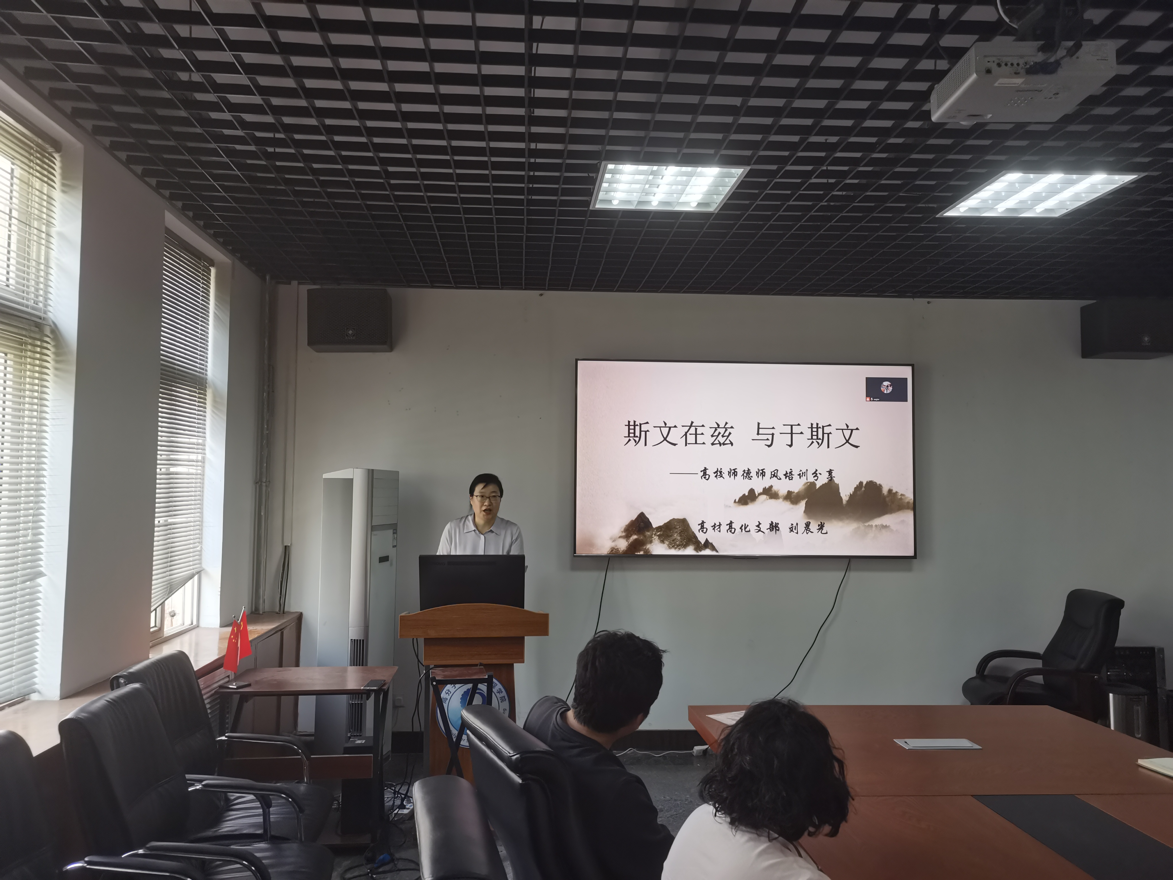 山东省首批“全国高校黄大年式教师团队”刘晨光老师以“斯文在兹,与于斯文”为题作师德师风培训分享,从斯文在兹、观器论道、榜样感召、师德嘉言四个方面,将教师的师德引领与公司产品工作结合起来,通过宣传正面典型,分享团队成长,引导教师们从优秀传统文化中汲取师德师风教育资源,教育引导广大教师仁而爱人,以德育德,做员工为学、为事、为人的大先生。