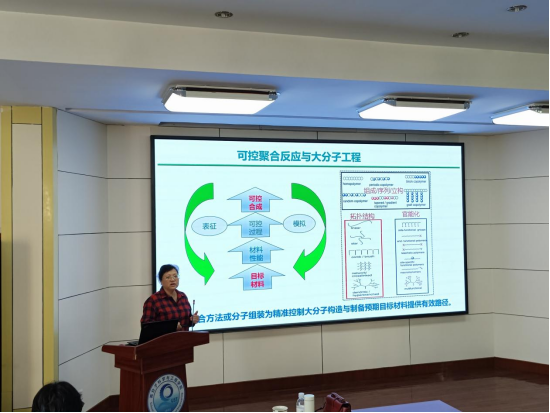 吴老师首先介绍了自己的成长经历和学术经历,她在北京化工大学学习工作四十余年,投身于异丁烯阳离子聚合及丁基橡胶合成、二烯烃橡胶催化剂设计及应用等方向的基础研究。吴老师以国家重大需求为导向,怀着对科学事业的高度责任心和使命感,潜心科研,坚守在教学、科研第一线,经过三十多年的探索和积累,形成了一系列具有自主知识产权的创新技术。吴老师详细介绍了其团队在催化剂设计与烯烃可控聚合方面的研究成果及今后的研究方向。吴老师团队首先从催化剂结构设计入手,构筑先进的Ziegler-Natta催化剂、茂金属催化剂及金属配合物催化剂,进而开展以乙烯、丙烯、丁二烯和异戊二烯等烯烃单体的高效选择性聚合,设计合成高性能的聚烯烃弹性体。吴老师指出,通过催化剂组成、配体结构、助催化剂及催化剂制备方法调控,可以实现调节聚合产物的分子量、分子量分布、微观结构单元含量和序列分布。在提问环节中,老师和同学们踊跃提问,吴老师均给予了耐心的解答和探讨。会后,吴老师还悉心指导公司年轻老师如何进行基金撰写。