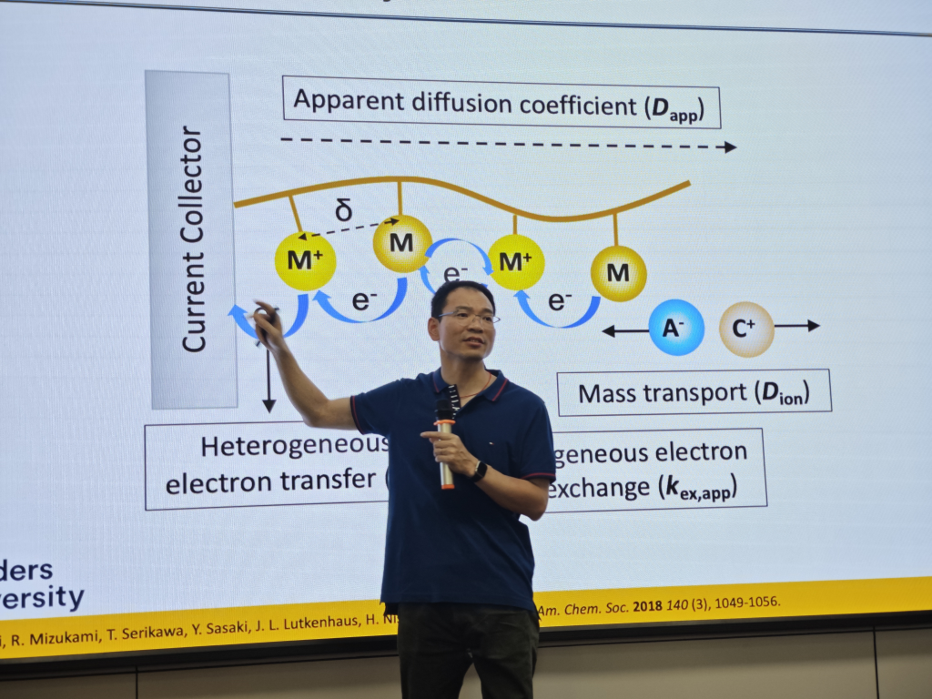 贾中凡教授的研究包括在分子水平上设计和制备功能性大分子结构,并在纳米和宏观尺度上研究其性质和应用。利用先进的有机化学和高分子化学开发可持续环境、健康、能源存储和绿色仿生催化的分子材料。该报告中,贾中凡教授以Polymeric Dendrimers类型的结构为例,阐述了功能性高分子的设计和可控合成。并介绍了在生物医用方面的成果实例。之后详细介绍了自由基聚合物的电化学及TEMPO结构在全有机电池中电极的设计及应用。特别是对于TEMPO结构双电子储能的利用,实现了高容量的绿色有机材料电池。