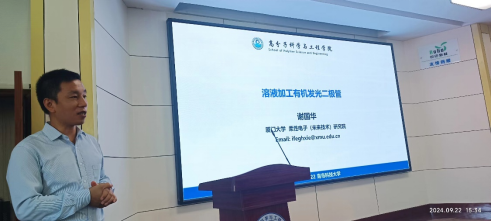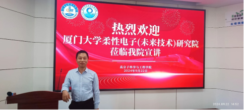 2024年9月22日下午,来自厦门大学柔性电子(未来技术)研究院的谢国华教授,在必威西汉姆联401报告厅为公司师生带来了一场精彩的共话柔性电子未来的学术报告。此次报告不仅拓宽了与会者对柔性电子技术的认知边界,也进一步促进了两校的学术交流与合作。谢国华教授作为厦门大学的知名学者,在柔性电子的研究方面取得了显著成就。他是国际知名期刊《The Innovation》、《SmartMat》、《InfoMat》、《发光学报》等期刊的青年编委,参与创办了《The Innovation Materials》,其学术影响力跨越国界,深受业界尊敬。