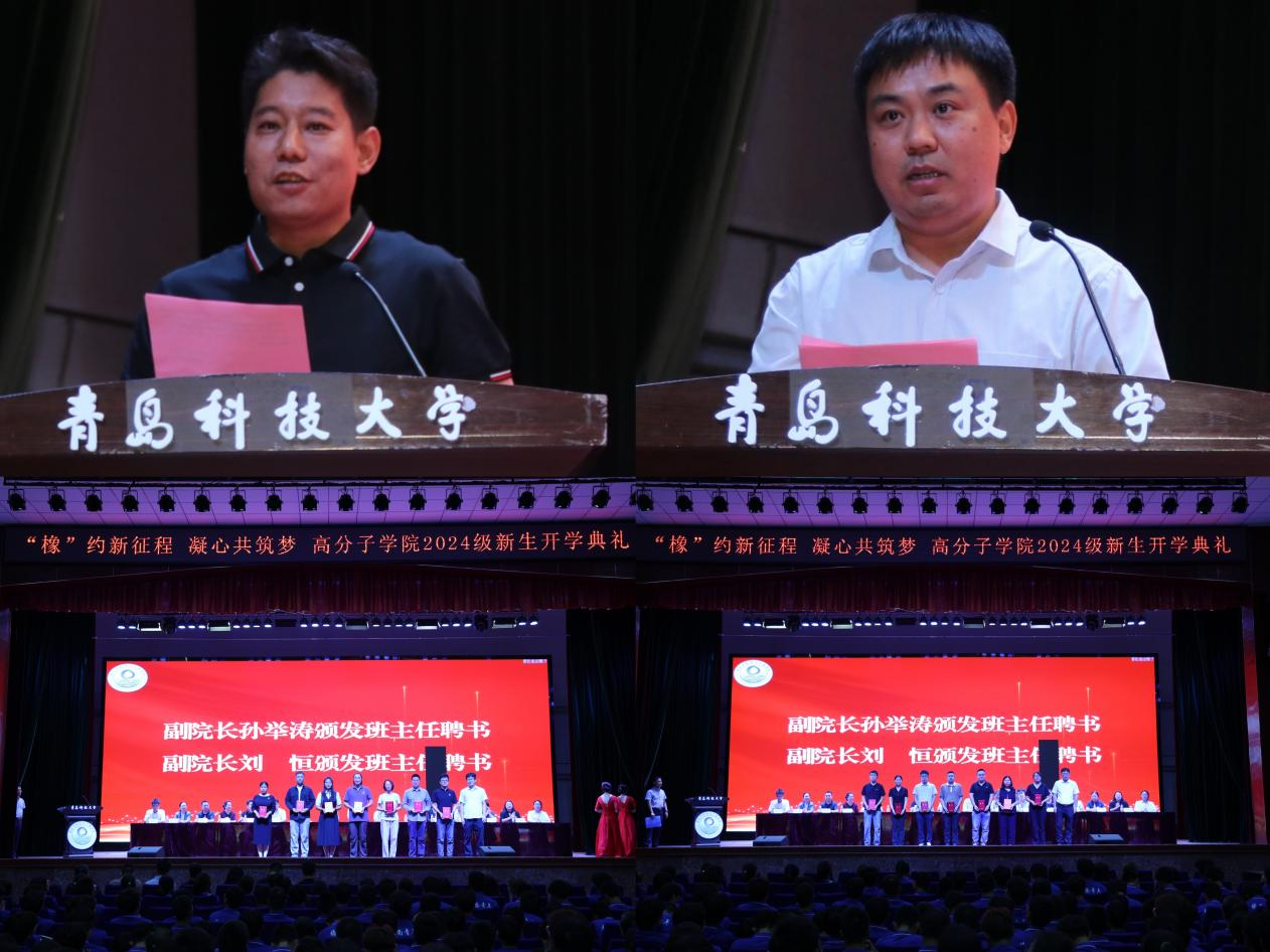 王庆富宣读《关于2024级班主任聘任的决定》;孙举涛、刘恒为班主任老师颁发聘书。