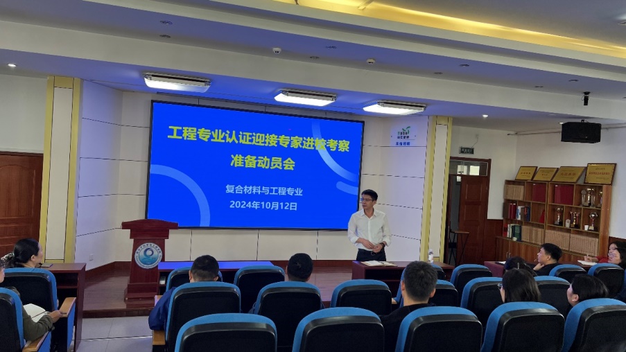 王庆富首先通报了复合材料与工程专业的认证工作进度和公司工作计划,强调了认证专家进校考察工作的重要性。蒋敏详细讲解了专家现场考查条件准备和2024工程认证的标准变化要点,并对专家入校考查工作进行了分解部署,落实每项工作的责任人及时间节点。