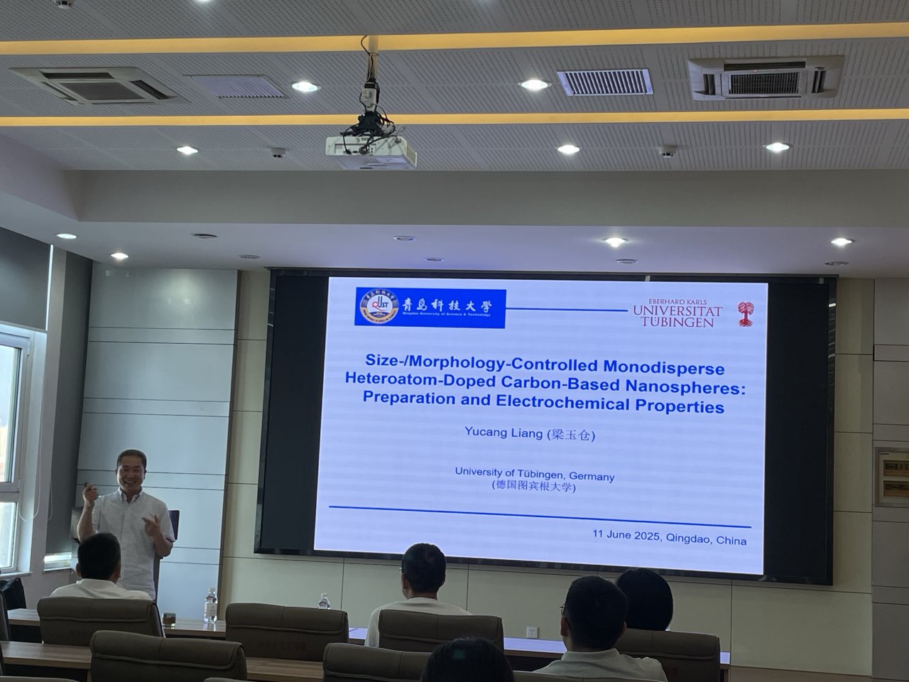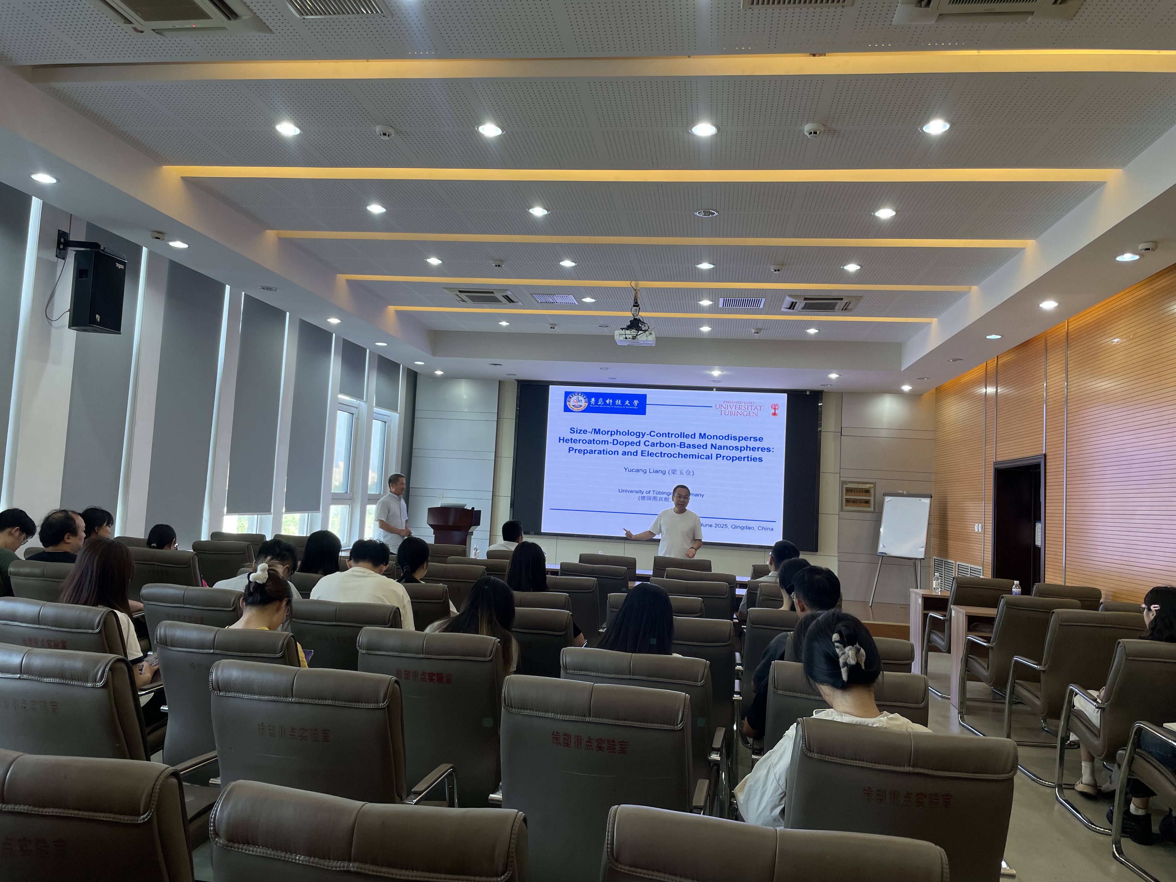 6月11日下午,德国图宾根大学高级研究员、博士生导师梁玉仓博士受邀在橡塑材料与工程教育部重点实验室401报告厅做了题为“单分散异原子掺杂的碳基纳米球的制备及电化学性能研究”的学术报告。本次报告吸引了众多师生参与。