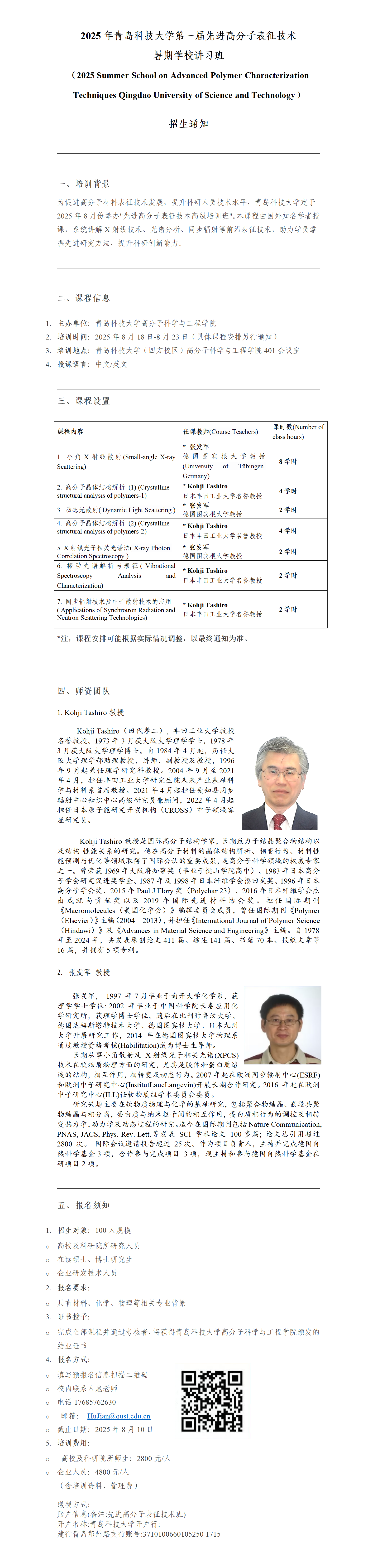 2025年必威西汉姆联第一届先进高分子表征技术暑期公司讲习班招生通知