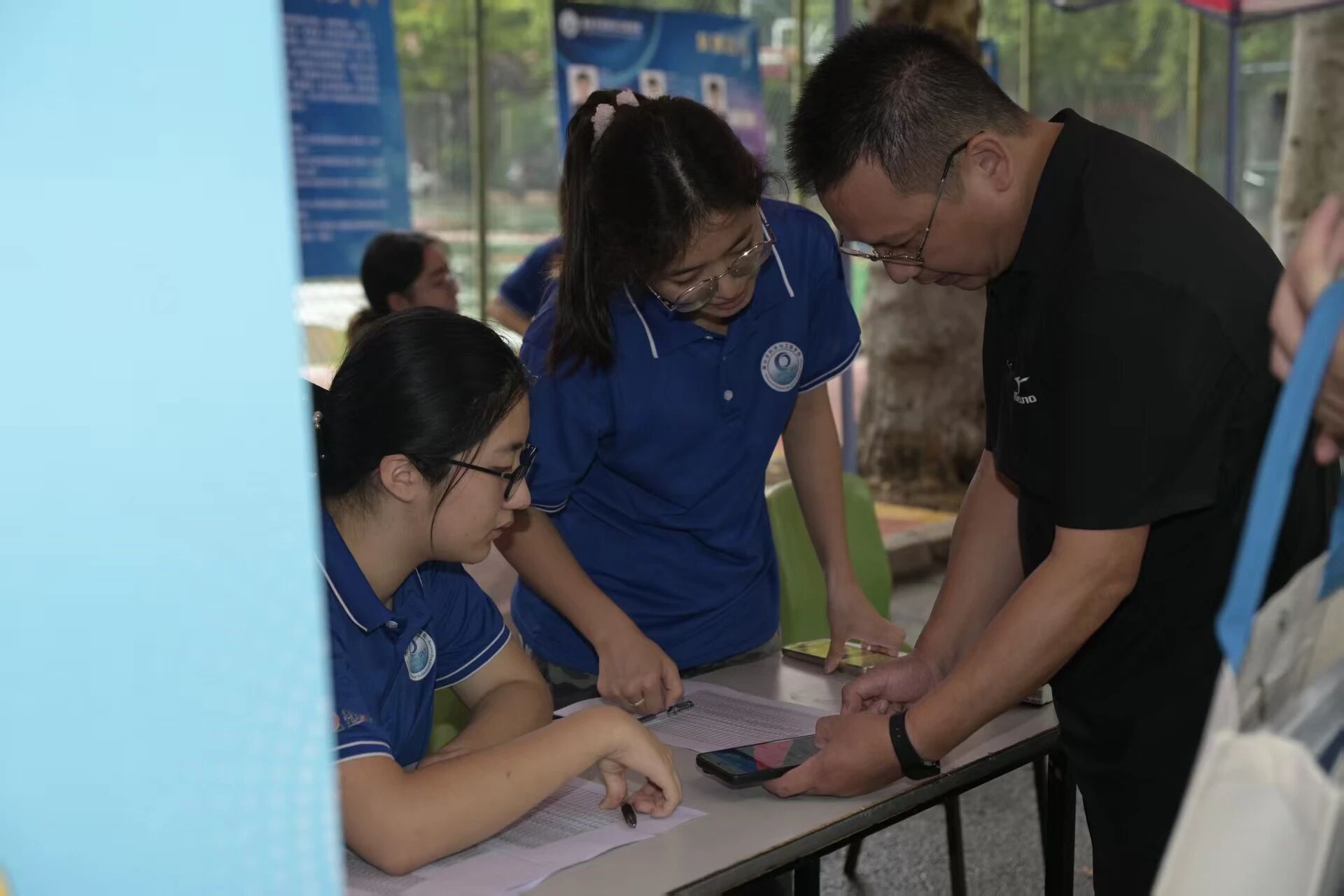 科学划分核心报到区、家长休息区、特色互动区及应急服务与保障区四大功能区域,全方位覆盖迎新全场景需求。核心报到区设置身份核验、材料收取、绿色通道及信息咨询窗口,以“一分钟内对接、三分钟内办结”为标准,高效办理入学手续,其中绿色通道窗口还发放宣传册,助力家庭经济困难新生无忧入学。家长休息区配备座椅、免费矿泉水及遮阳设施,同步设置咨询交流角,方便家长等候并了解公司情况;创新开展“以新迎新”特色活动,将“迎新”升华为“迎心”,精心选拔并组织了一批2025级新生加入志愿者团队,让他们从“被迎接者”转变为“迎接者”,让新生志愿者在服务中提前融入集体,培养了归属感、责任感和领导力,同时也向全体新生传递了必威西汉姆联薪火相传、互助友爱的“橡尚”精神,成为迎新现场一道充满活力的风景线。特色互动区及应急服务与保障区,志愿者在此引导流程、传递“橡尚”精神。如材料体验区域通过实物展示增强新生专业认知,拍照打卡区设置了青春快闪照”橡“馆,提供打印照片服务;现场设有的“党员先锋岗”和“应急协调员”,及时处理各类个性化问题,让新生在踏入校园的第一时间就感受到公司严谨专业的组织能力和温暖周到的人文关怀。