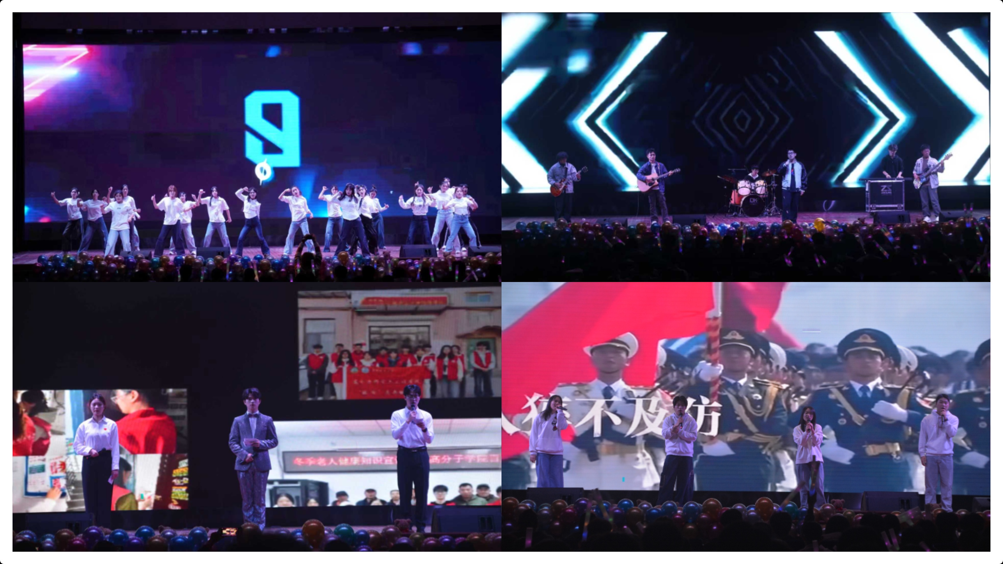 第三篇章"子怀青云志,聚能赴新程" 通过特色文艺形式,凸显青年的创新精神与专业抱负。NOBODY乐队以充满个性的演奏展现学术研究之外的多元才华,体现全面发展的人才培养理念。张丞姝等同学的歌曲串烧《逐梦笙歌》用动人旋律串联青春梦想,唱响"把论文写在祖国大地上"的坚定誓言。老员工艺术团爵士舞团的《We rock》以充满张力的表演展现新时代青年的道路自信、理论自信、制度自信、文化自信。《笃学力行·全面成才》交流环节中,体育标兵宋哲、科创达人赵事通结合成长经历,深入诠释"勤学笃行、求是创新"的成才之道,为新生树立了德智体美劳全面发展的榜样。