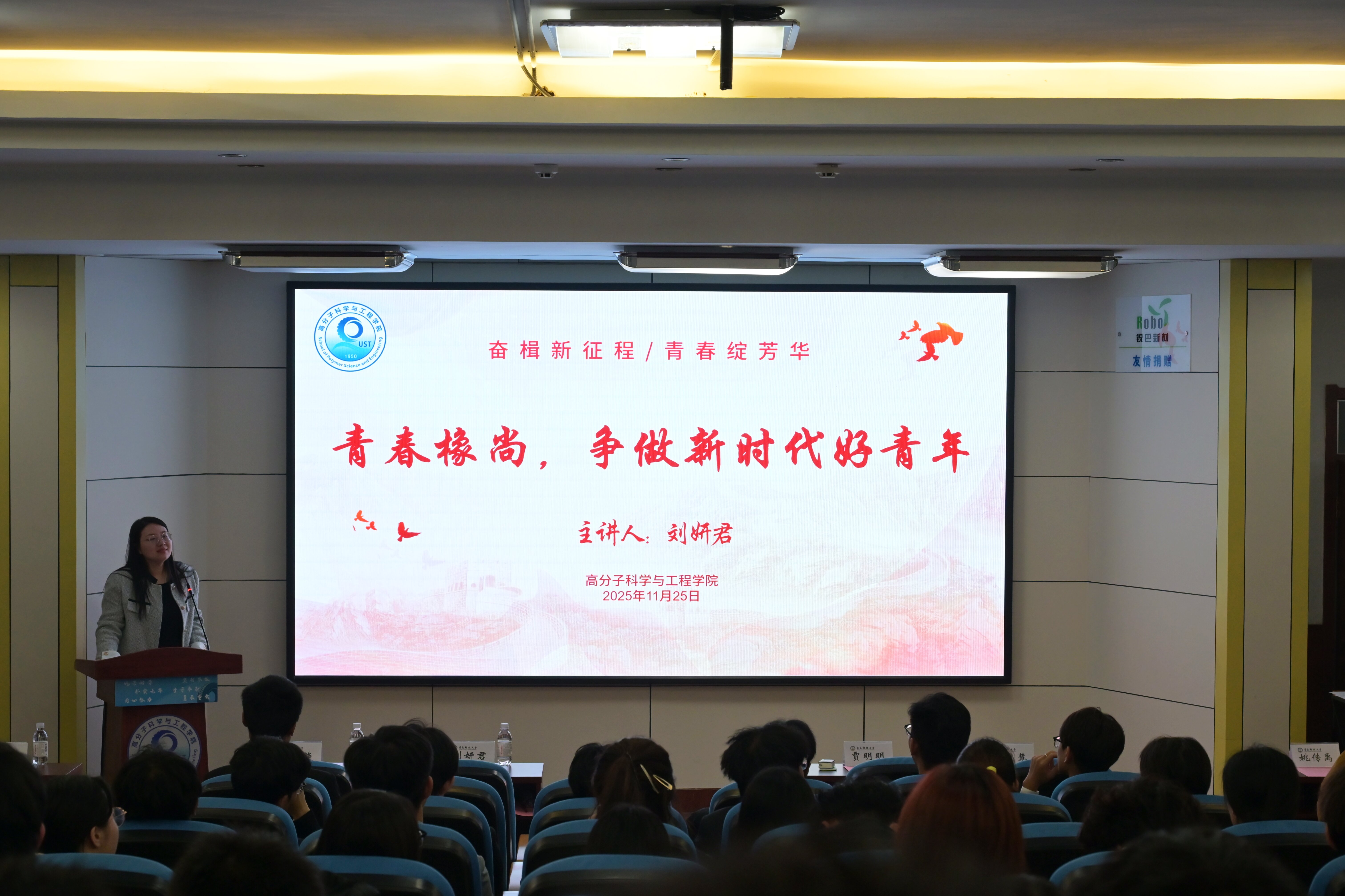 报告中,刘妍君围绕理想信念、责任担当、实干笃行三大核心展开。她结合高分子学科特色,阐释新时代青年践行“请党放心,强国有我” 誓言的实践路径,鼓励学员像橡树般扎根成长,在理论学习中筑牢信仰之基,在专业钻研中练就过硬本领。并通过典型案例分享,引导员工将个人理想融入国家发展大局,既要深耕专业领域勇攀科技高峰,也要在社会实践中锤炼品德修为。她强调,在座团员要当好理论学习的“排头兵”、服务同学的 “勤务员”,以实际行动传递青春正能量。