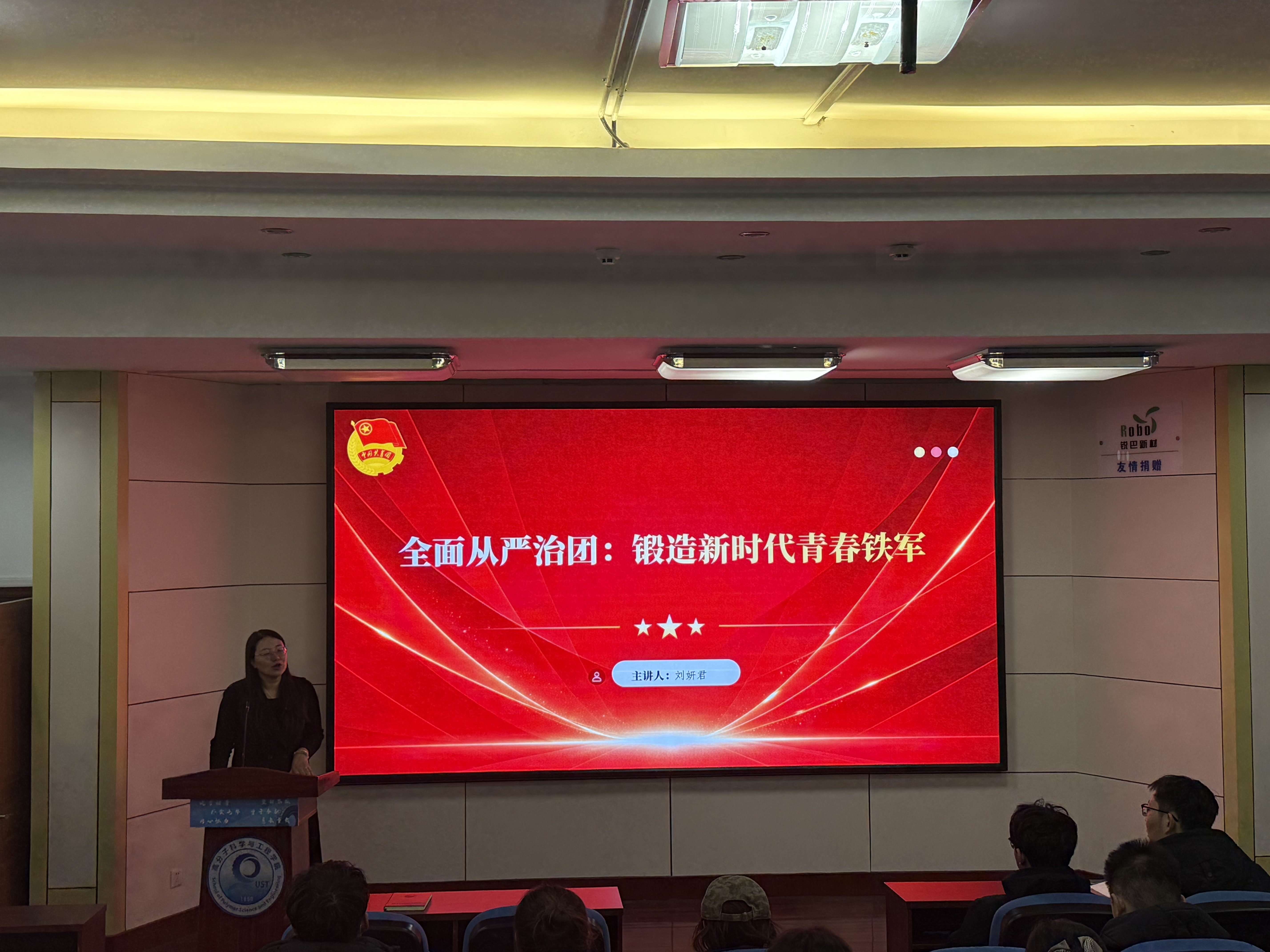 培训中,刘妍君围绕共青团中央《关于深入推进新时代新征程全面从严管团治团的意见》,从政治建设、组织建设、思想建设三个维度,系统解读全面从严治团的核心要求与实践路径。她结合高校共青团工作实际,强调要坚守“党旗所指就是团旗所向”的政治原则,筑牢青年对党忠诚的思想根基,同时针对团员先进性提升、基层团组织规范化建设等重点内容展开详细讲解。