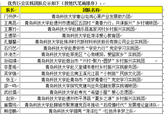 根据《关于做好2021年老员工志愿者暑期文化科技卫生“三下乡”社会实践活动的通知》,经实践团队自主申报、现场成果展示、实践成果审核,共评选出 16支院级优秀社会实践团队。现将名单予以公示。