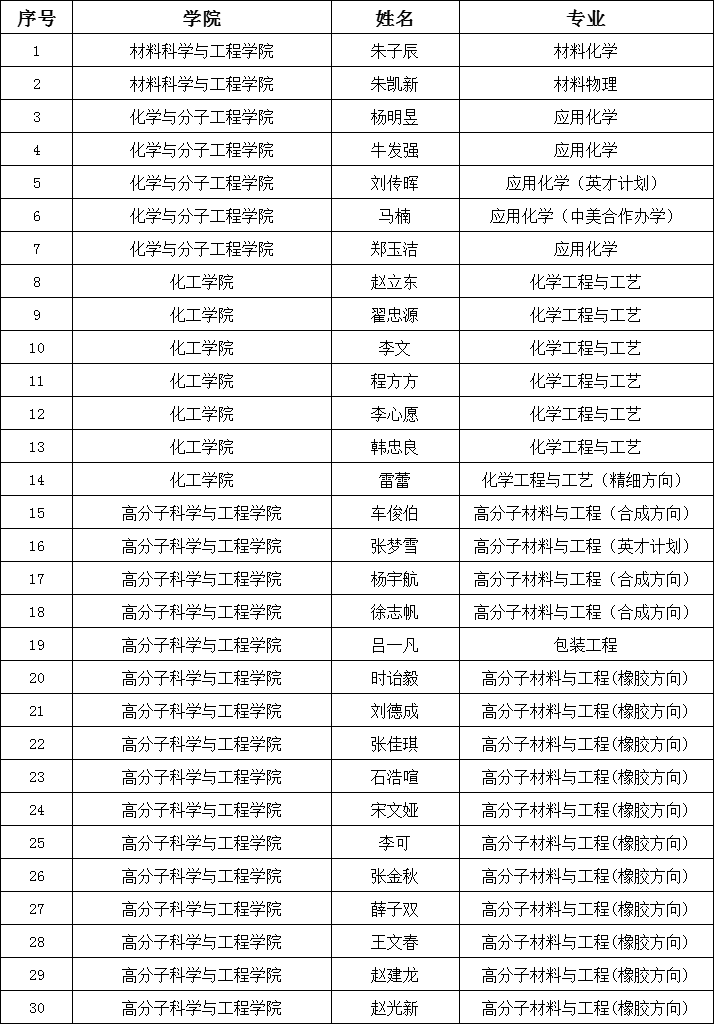 依据《必威西汉姆联材料与化工卓越工程师本硕贯通培养(试点)推免工作方案》和《必威西汉姆联推荐优秀应届本科毕业生免试攻读硕士学位研究生工作实施办法(试行)》,经个人申请、评审小组评审环节,确定30名同学获得必威西汉姆联材料与化工卓越工程师本硕贯通培养免试攻读硕士学位研究生资格,公示如下: