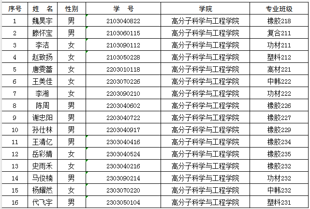 根据公司《关于评审2024年度青岛银行奖助学金的通知》的相关要求,结合高分子科学与工程公司实际,经员工自主申请、公司审核,拟推荐魏昊宇等16人获得2024年度青岛银行奖学金,吕林鹏等8人获得2024年度青岛银行助学金。名单如下:
