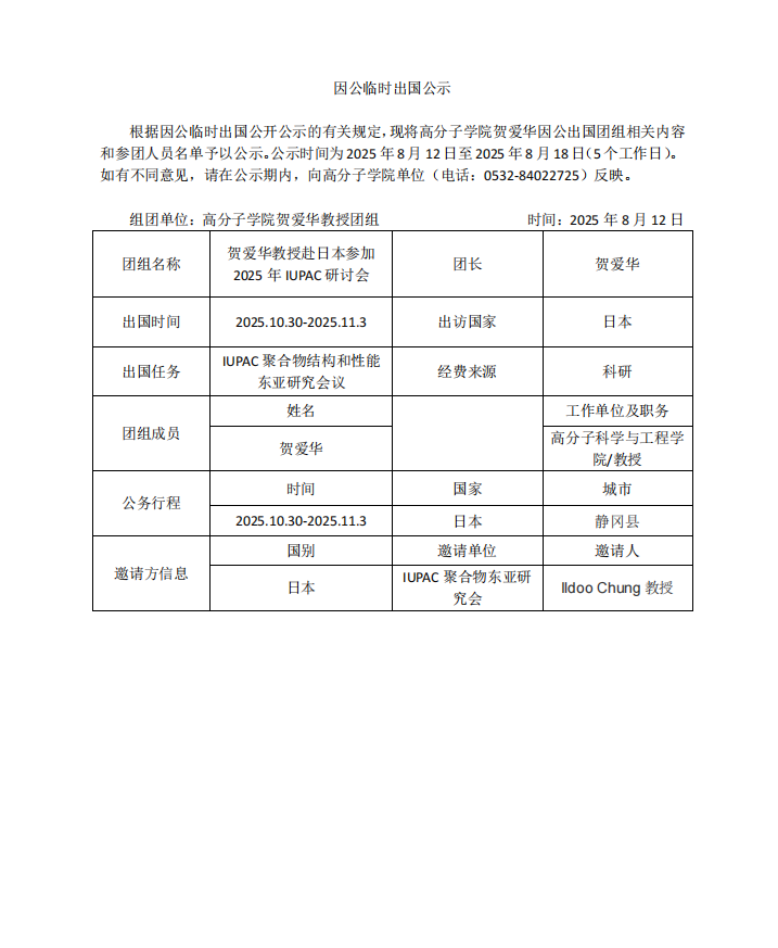 贺爱华出国公示